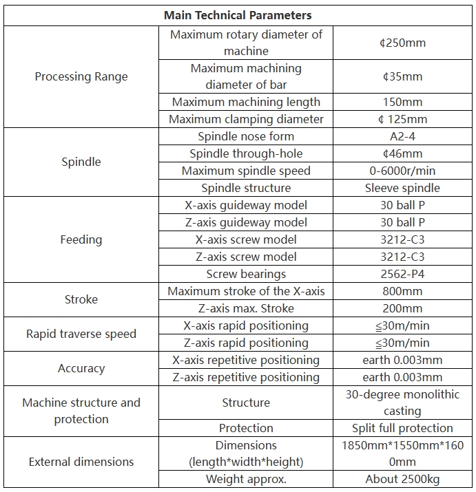 1、 This machine adopts a 30 ° overall inclined bed structure, which is easy to remove chips, has a low center of gravity, strong bending resistance, good component protection, and easy to operate.