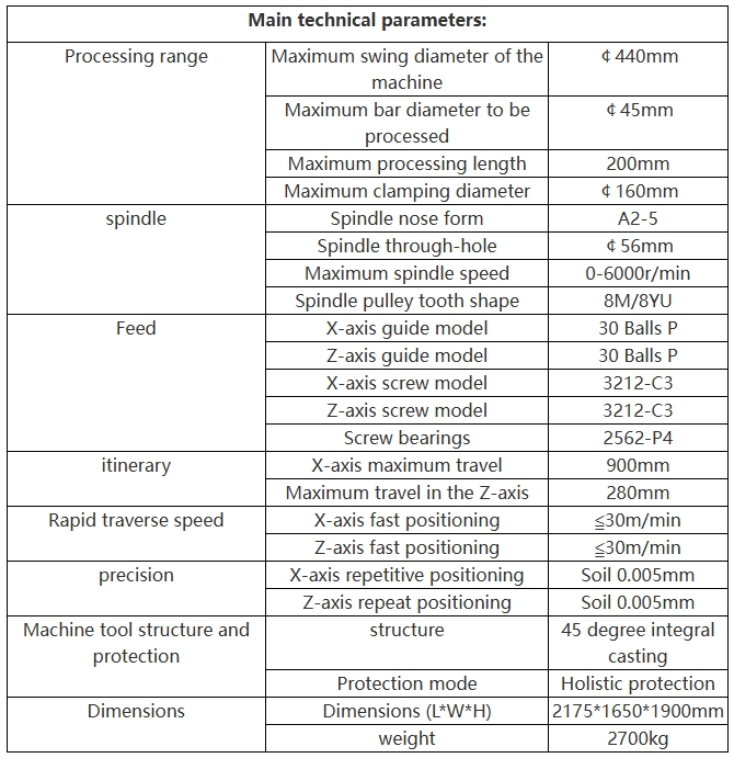 1.the machine adopts 30° integral cast early slant bed structure, easy chip removal, low center of gravity, strong bending resistance and good component protection.