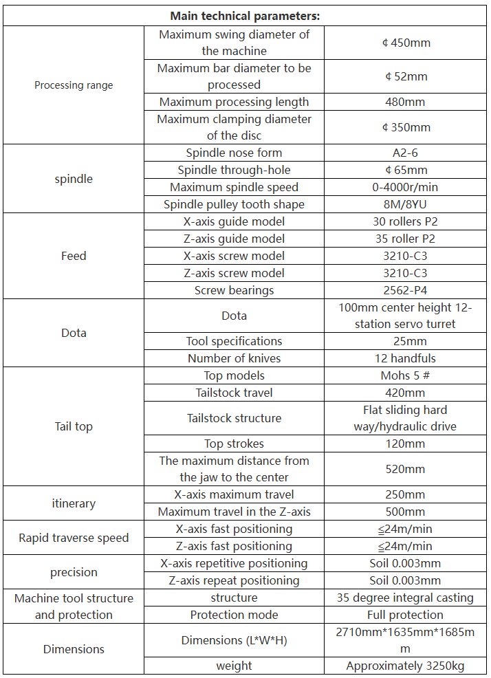 Fourth, the machine tool uses a rear hydraulic turret design, which has good rigidity, easy chip removal, and implements the overall protection of the whole machine tool, so as to better effectively protect the components of the machine tool.