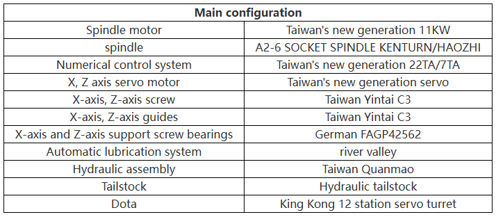 1. The bed adopts a 60-degree integral casting structure, and through a series of optimization, the spindle adopts roller bearings and roller guide rails, so that the machine tool can achieve heavy cutting processing.